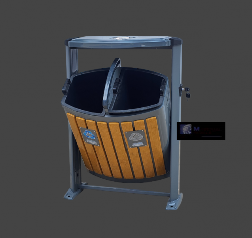 ถังขยะแยกประเภท 2 ช่อง ความจุช่องละ 36 ลิตร พร้อมที่เขี่ยบุหรี่ด้านบน เหมาะสำหรับภายนอกอาคาร