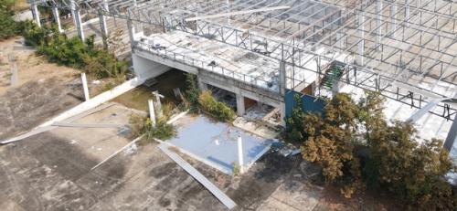 รั้วคอนกรีตเสริมเหล็ก รอบพื้นที่ยาว ~460 ม.