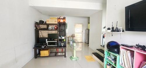 ขายทาวน์โฮม 2 ชั้น เนื้อที่ 17.4 ตร.ว. พื้นที่ใช้สอย 90 ตร.ม. มี 3 ห้องนอน 2 ห้องน้ำ 1 ห้องครัว พร้อมเฟอร์นิเจอร์ แอร์ 1 ตัว ชั้นล่างพื้นกระเบื้อง ชั้นบนพื้นลามิเนต