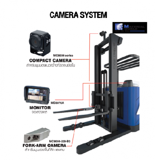 กล้องติดรถฟอล์คลิฟท์ ออกแบบมาเพื่อการทำงานที่มีประสิทธิภาพ และปลอดภัย ในคลังสินค้า โดยมีระบบป้องกันการสั่นสะเทือนจากการขับขี่ ไม่มีสัญญาณรบกวนขณะการใช้งาน สามารถใช้ในที่แสงสว่างต่ำได้ และสามารถใช้ในห้องเย็นโดยไม่เกิดฝ้า กล้องติดบนด้านหน้าช่วยให้ผู้ขับรถฟอร์คลิฟท์สามารถมองเห็นจากการบดบังของพาเลท และหลบหลีกสิ่งกีดขวางได้อย่างแม่นยำ กล้องติดโคนงาช่วยให้ผู้ขับรถฟอร์คลิฟท์สามารถมองเห็นพื้นที่สำหรับวางพาเลท โดยเฉพาะบนชั้นวางพาเลทที่มีความสูงซึ่งยากต่อการมองเห็น