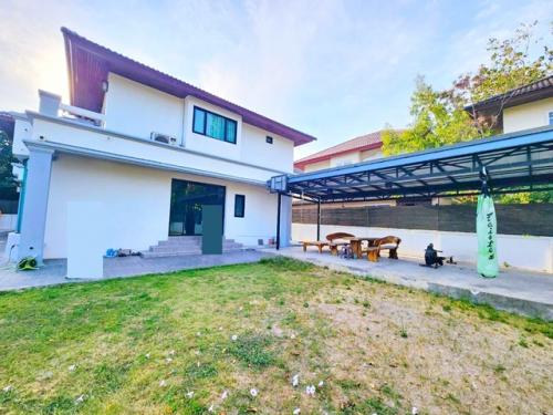 guesthouse corner lot 5bed Robinson Ratchaphruek 2.4 km. For rent 2-story detached house with 4 bath 121 sq.wa. 310 sq.m. fully furnished. Pakkret 2 Hospital 2.6 km. Prime location next to main road and park. 49,999 B-M. Singapore International School Nonthaburi 3.0 km. Suitable for residential use. Chaiyaphruek Road.