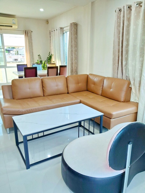 Suvarnabhumi Phase2 Romklao Rd.2-8. 37% discount from 35,000 to 21,999THB. B-M Luxury 2-story detached house for rent fully furnished with appliances 51 sq.wa. 210 sq.m. 1.0 km. from Ruamrudee International School. Garden view good air shady 2 bath 3 bed Suitable for residence or home office. Keha Ramkhamhaeng Market 1.2 km. Keha Romklao-Ramkhamhaeng Intersection.